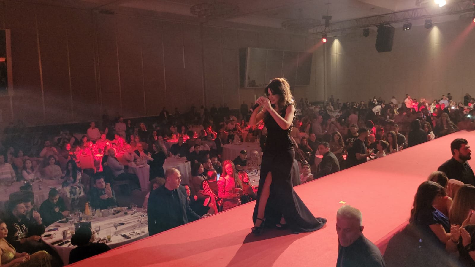 وخلال الحفل أعطت فرصة لشخص كويتي وغنى برفقتها وأشادت بصوته، وهذا إن دل على شيء على تواضعها.
